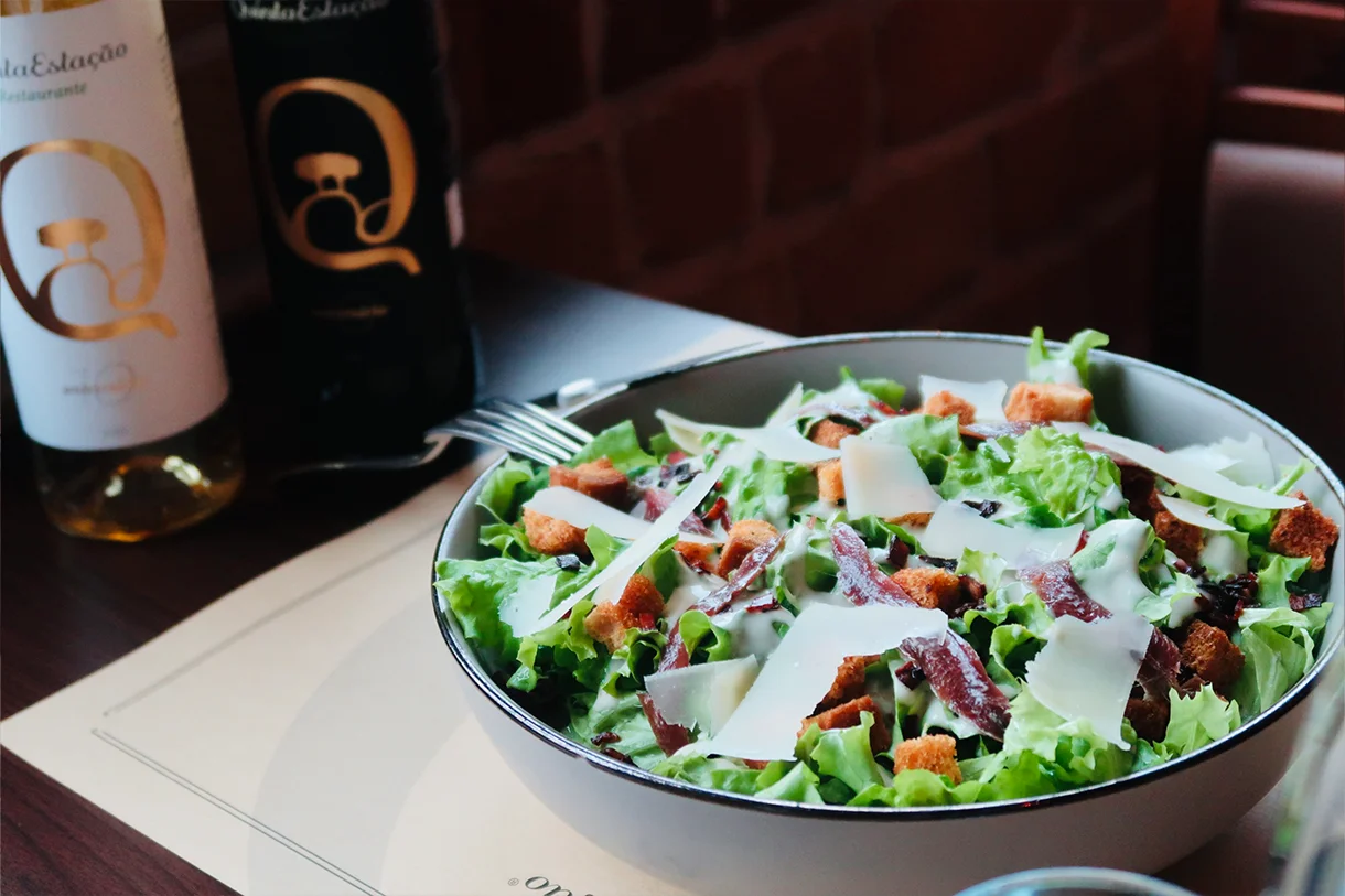 Try our Caesar´s Salad, specially prepared with lettuce, Cesar dressing, parmesan cheese, croutons and anchovies.