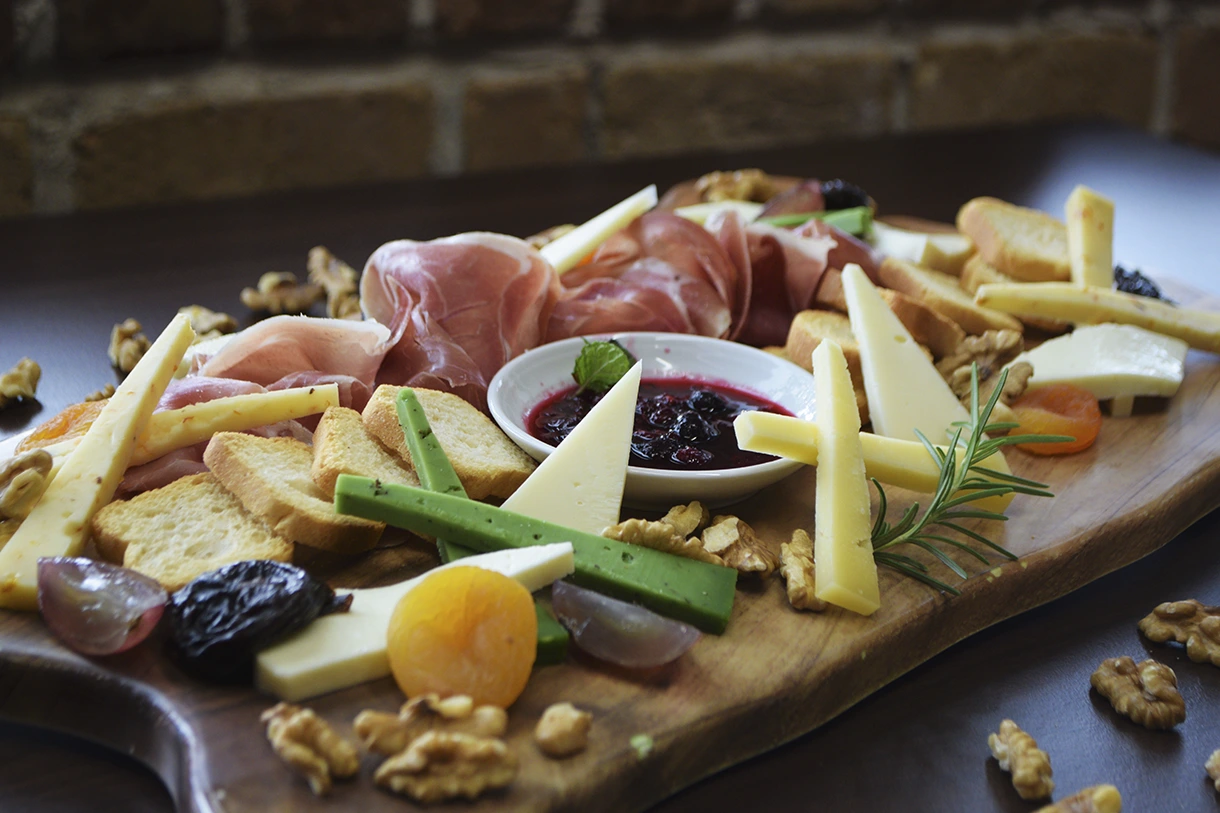 Delicious board with varieties of cheese and ham, ideal for sharing... (2/3 people.)