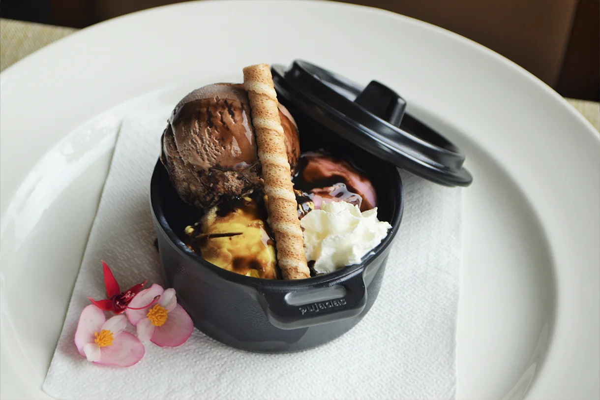 Delicately accompanied with caramelized banana and paired with the irresistible tropical touch of our passion fruit sauce.