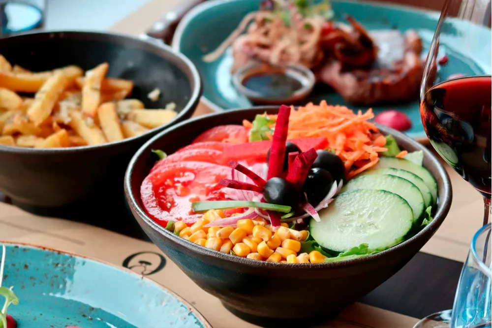 SaladA refreshing salad composed of crisp lettuce, ripe tomatoes, red onion, grated carrot and fresh cucumber, dressed with a homemade vinaigrette. A light and healthy option that brings freshness and balance to your plate.