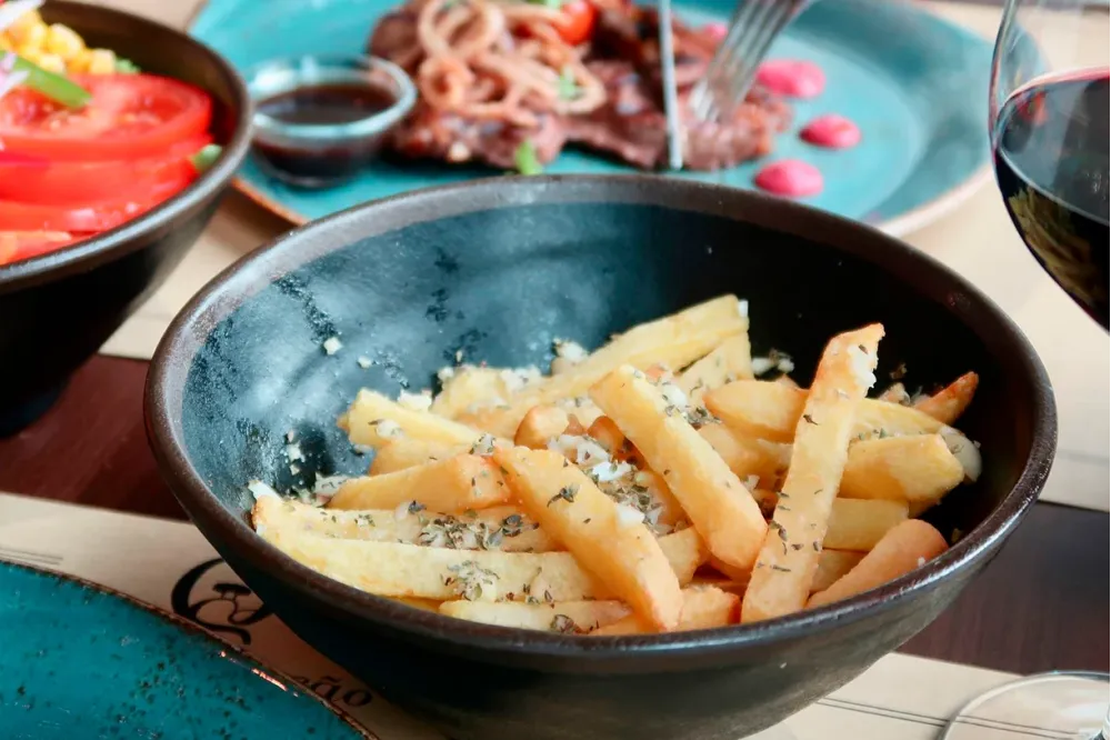 Fries with broken eggsOur fries with broken eggs are an irresistible combination of flavors and textures. The hand-cut fries are cooked to a golden crisp, while the eggs are delicately broken, allowing the creamy yolk to coat the fries. Finished with a pinch of sea salt.
